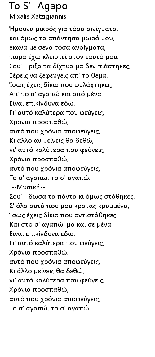 Το σ' αγαπώ, το σ' αγαπώ. |