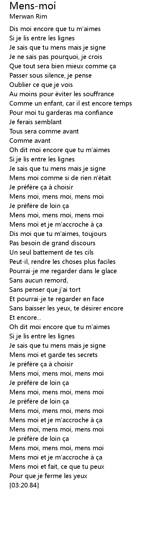 | [01:24.87] | Mens moi, mens moi, mens moi |