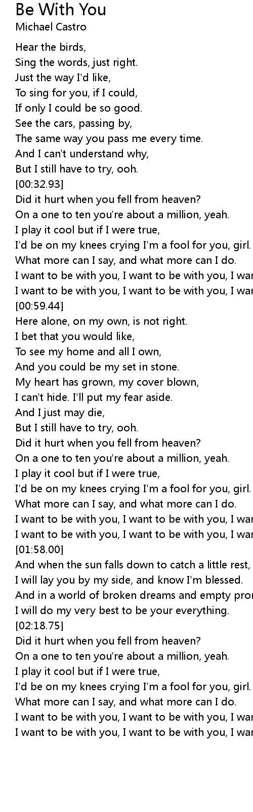 I want to be with you, I want to be with you, I want to be with you, |
