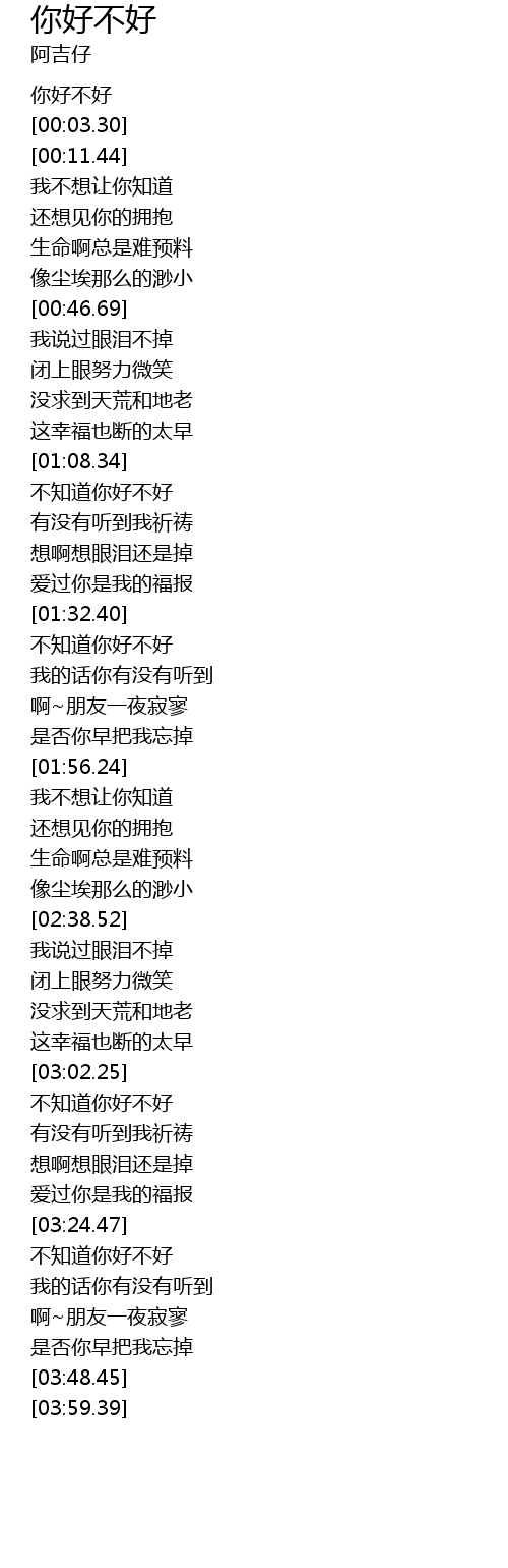 | [00:00.00] | 你好不好 |