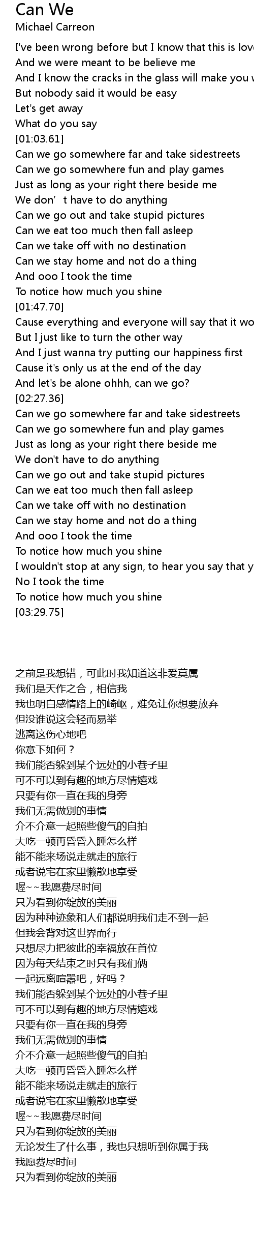 | [02:20.00] | And let's be alone ohhh, can we go? |