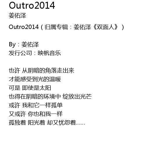 | Outro2014(归属专辑:姜佑泽《双面人》) | |
