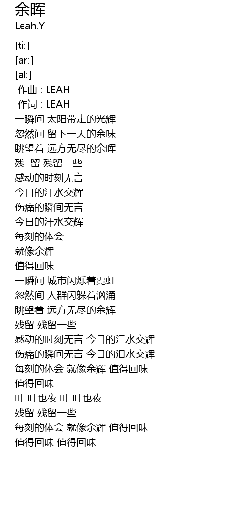 | [00:01.00] | 作词 : LEAH |