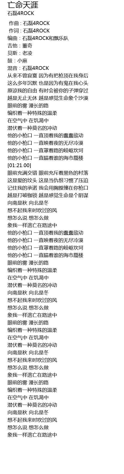 | [00:00.333] | 作词 : 石磊4ROCK |