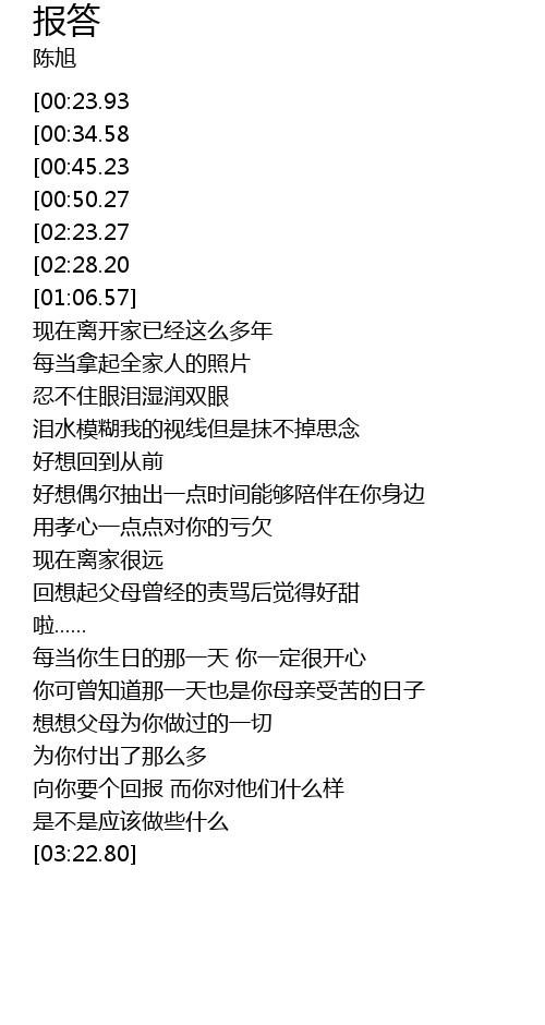 | [02:49.35][02:28.20][01:00.71] | 无私的爱该如何报答 |