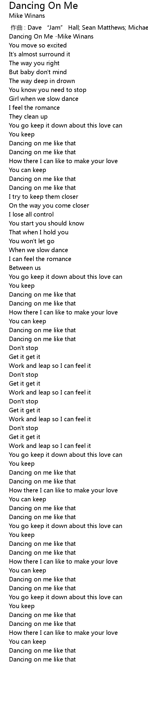 | [00:00.89] | Dancing On Me -Mike Winans |