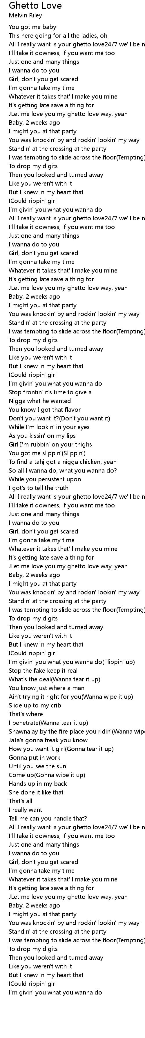 All I really want is your ghetto love24/7 we'll be makin' love |