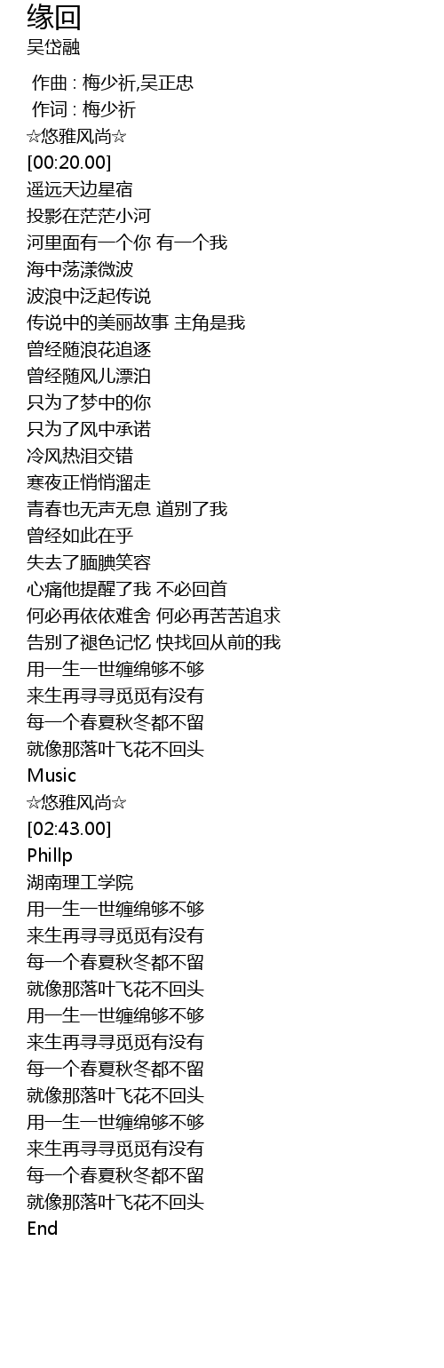 | [04:20.00] | 每一个春夏秋冬都不留 |