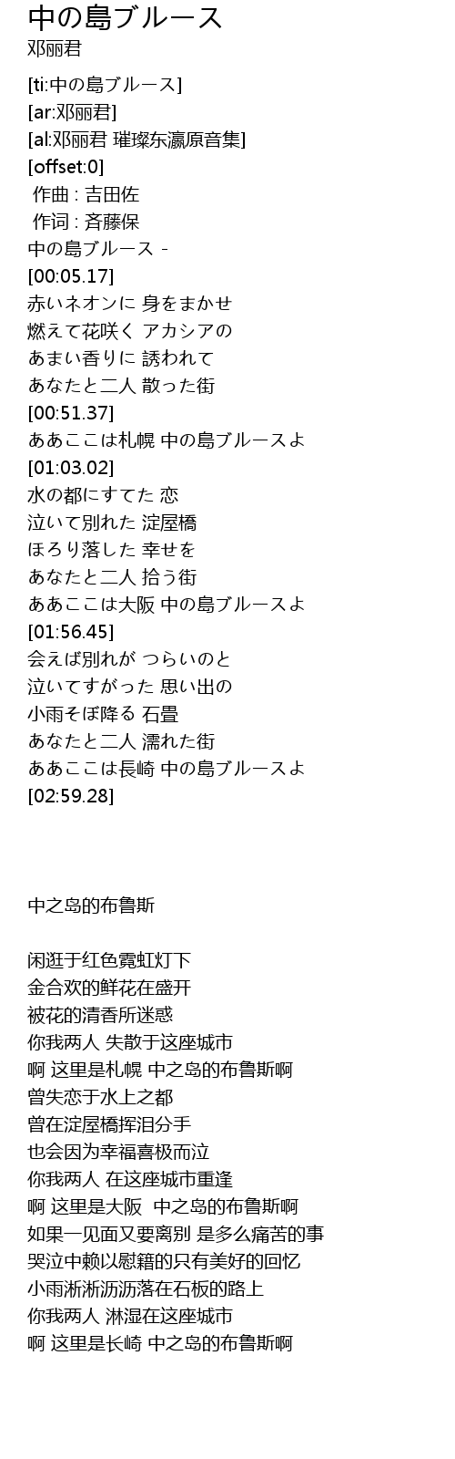 | [00:51.93] | ああここは札幌 中の島ブルースよ |