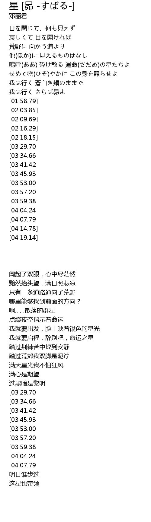 | [01:23.55] | 我は行く さらば昴よ |