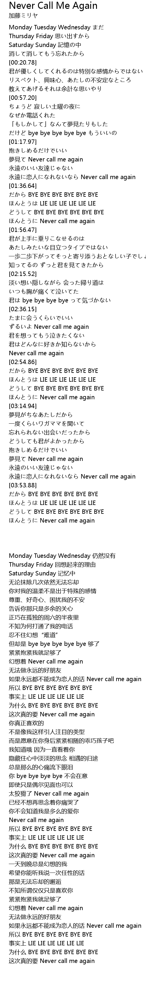 | [03:05.00] | どうして BYE BYE BYE BYE BYE BYE |