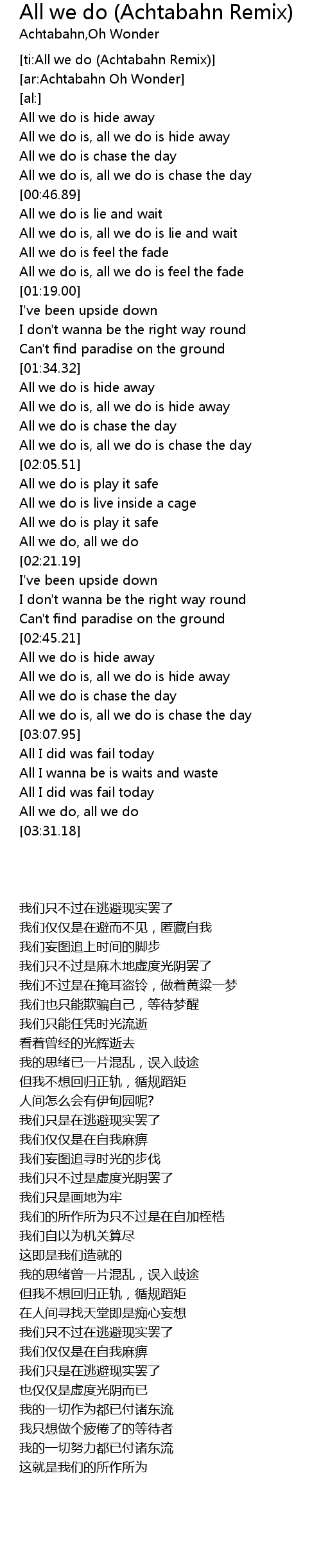 | [01:07.48] | All we do is, all we do is lie and wait |