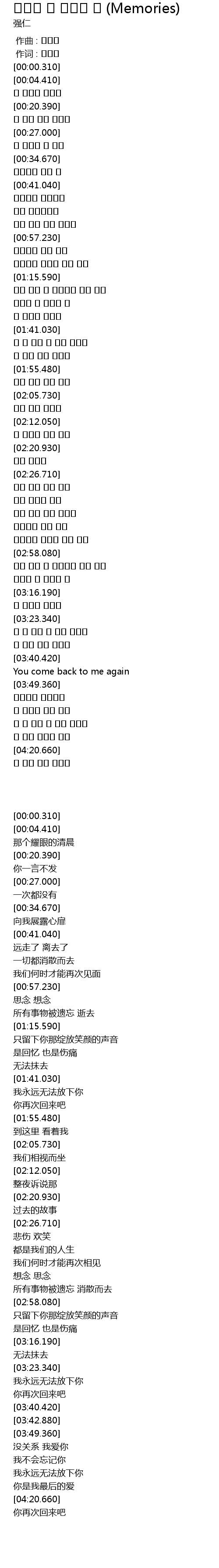| [02:59.110] | 웃음 짓던 그 목소리만 내게 남아 |