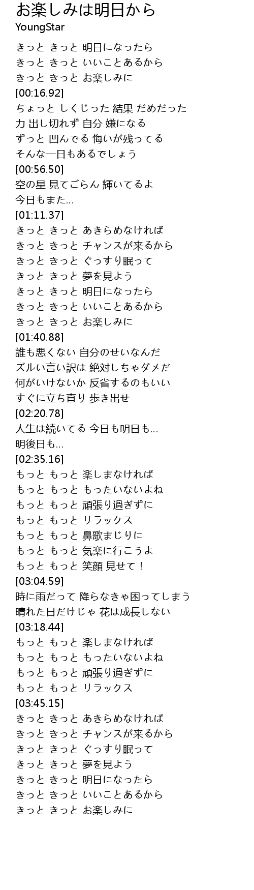 | [02:54.68] | もっと もっと 気楽に行こうよ |