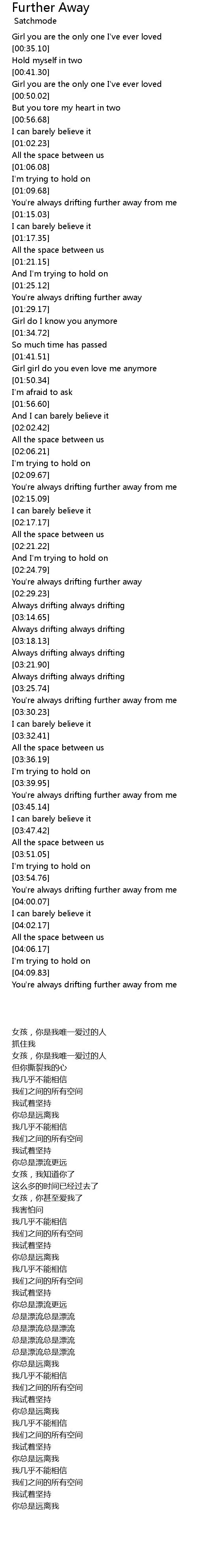 You're always drifting further away from me |