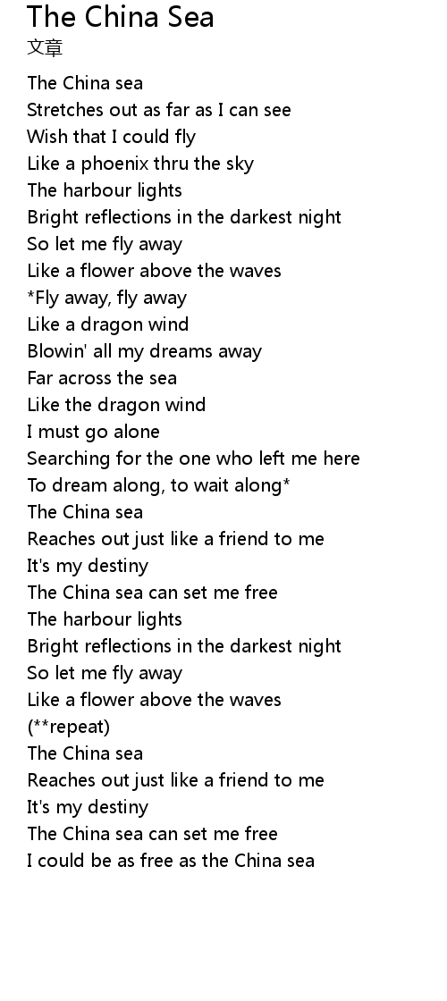 | The China sea can set me free | |