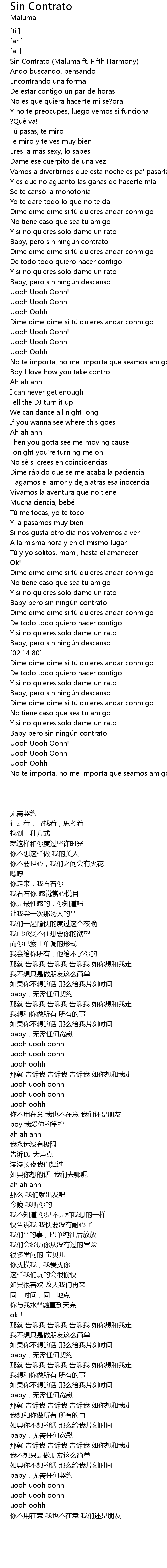 | [00:00.00] | Sin Contrato Maluma ft. Fifth Harmony |
