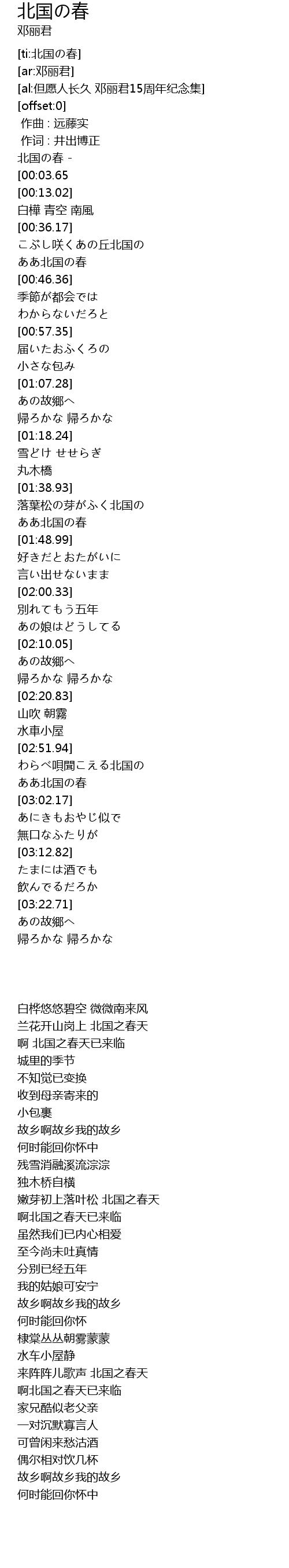 | [02:53.81] | わらべ唄聞こえる北国の |