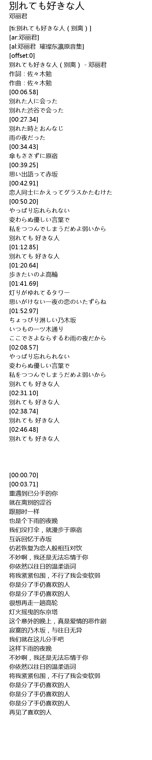 | [00:00.70] | 别れても好きな人(别离) - 邓丽君 |