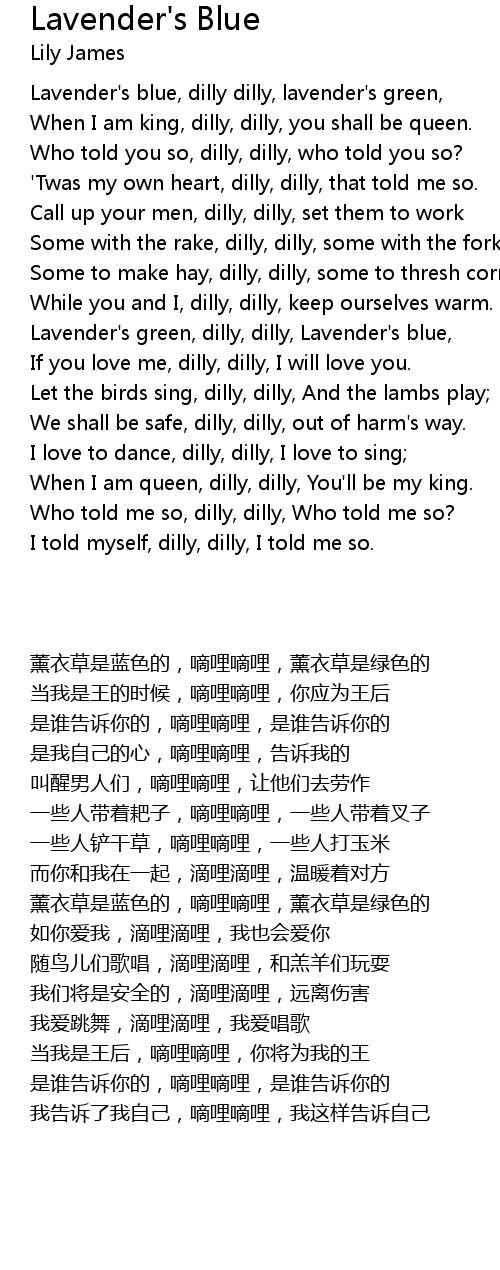 Lavender's green, dilly, dilly, Lavender's blue, |