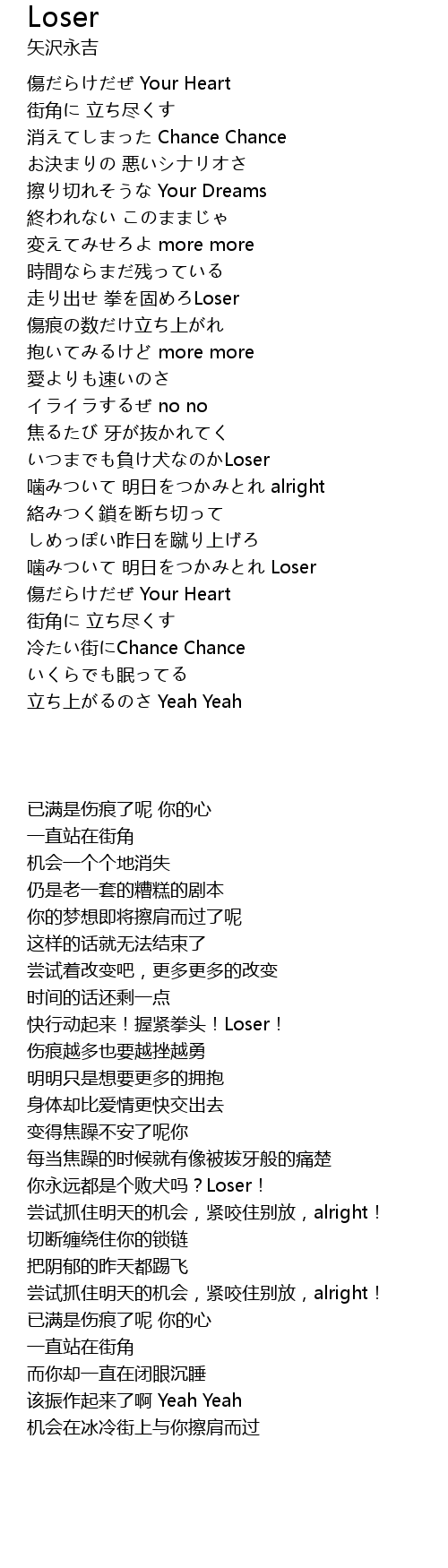 | [00:53] | 走り出せ 拳を固めろLoser |