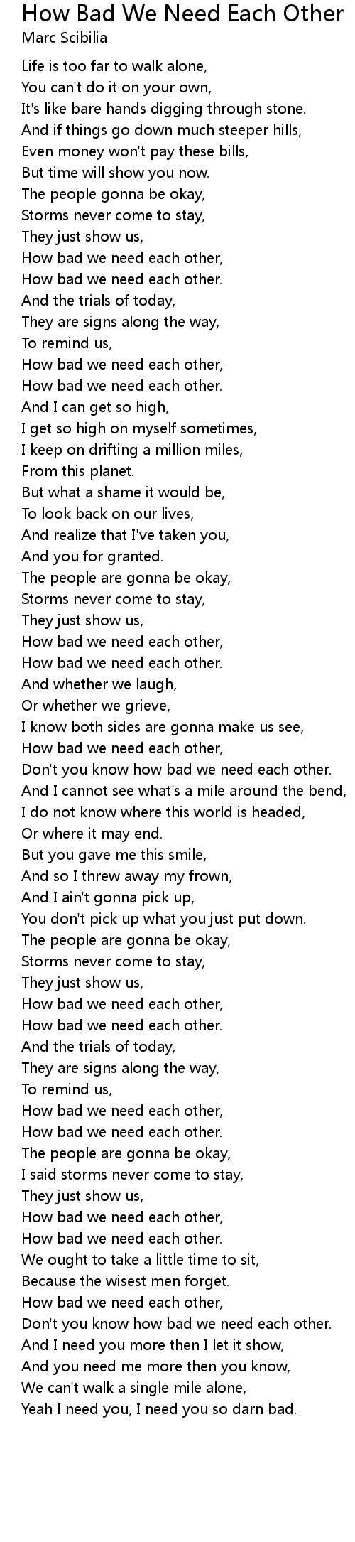 How bad we need each other, |