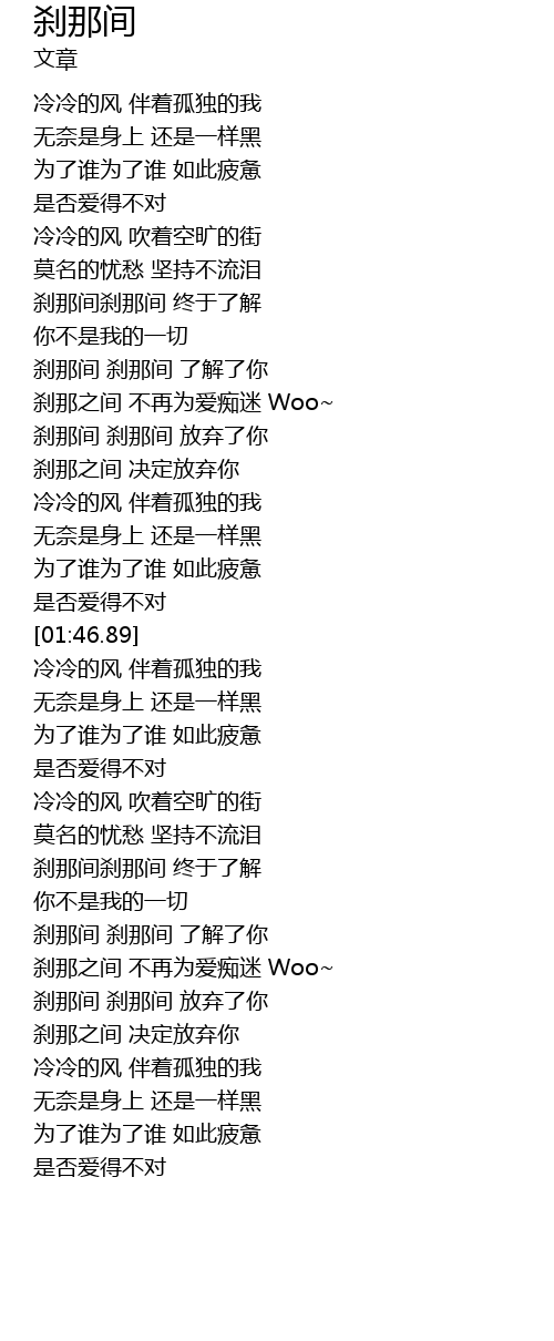 | [00:46.48] | chà nà jiān chà nà jiān zhōng yú liǎo jiě |