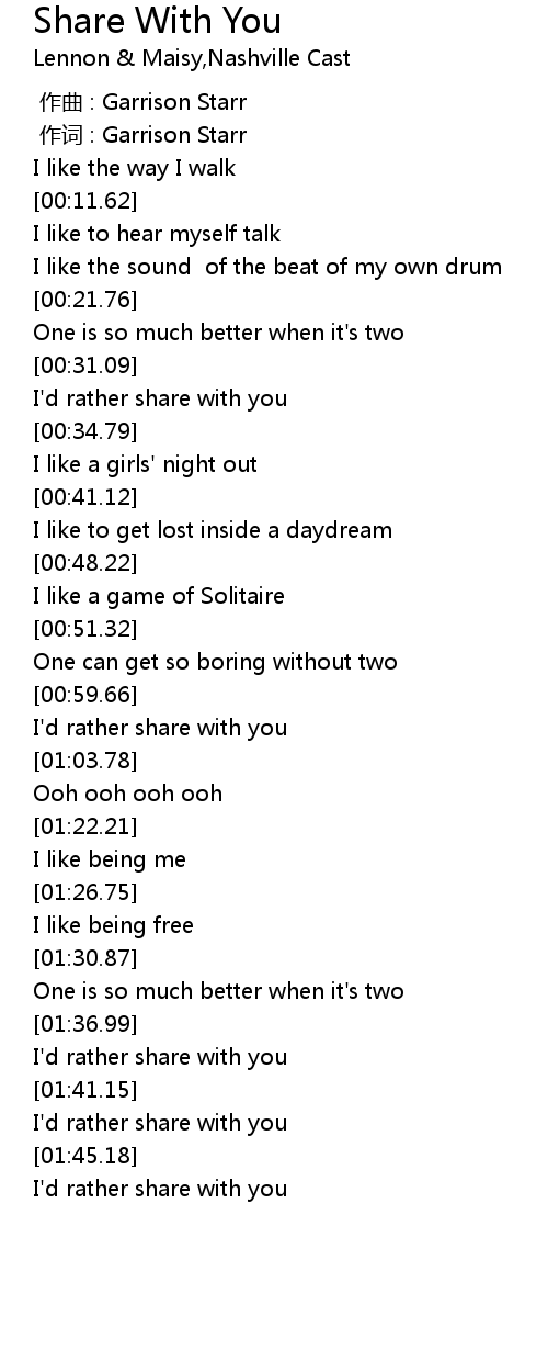 | [01:01.33] | I'd rather share with you |