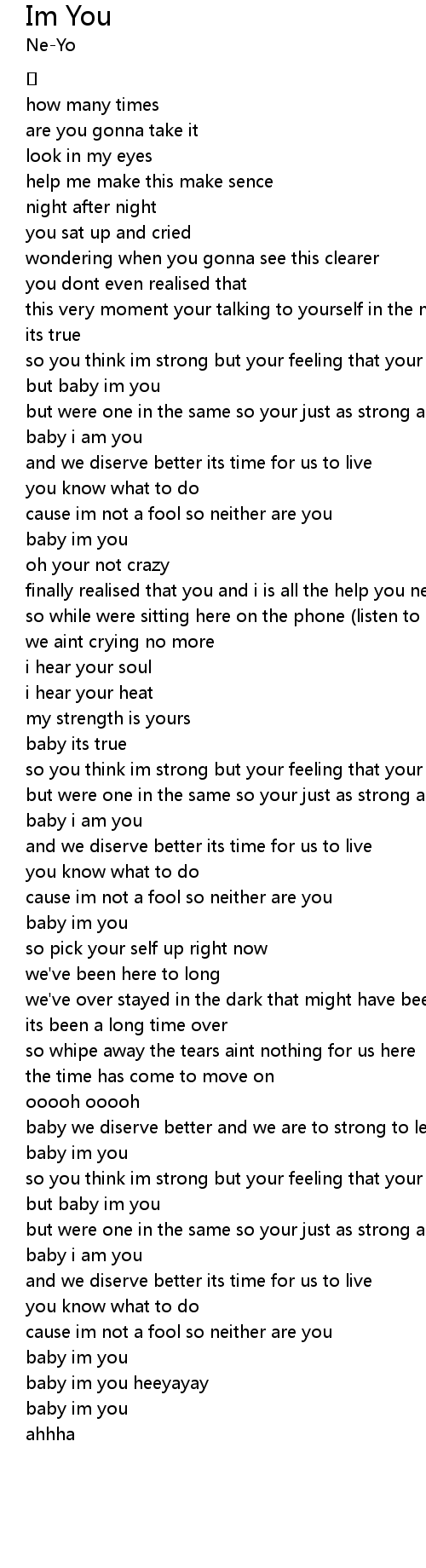 | [01:35.692] | but were one in the same so your just as strong as me |