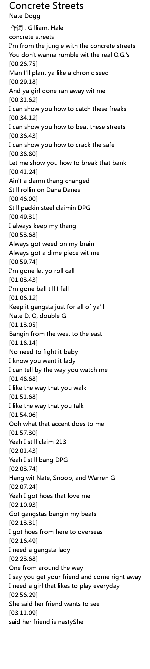 | [02:04.80] | Hang wit Nate, Snoop, and Warren G |