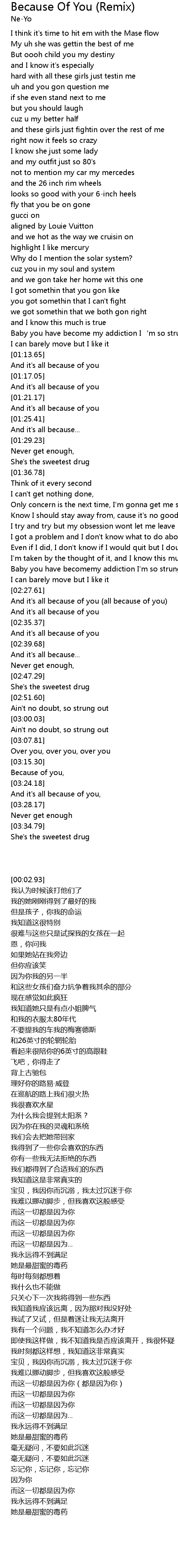 | [02:28.61] | And it's all because of you (all because of you) |