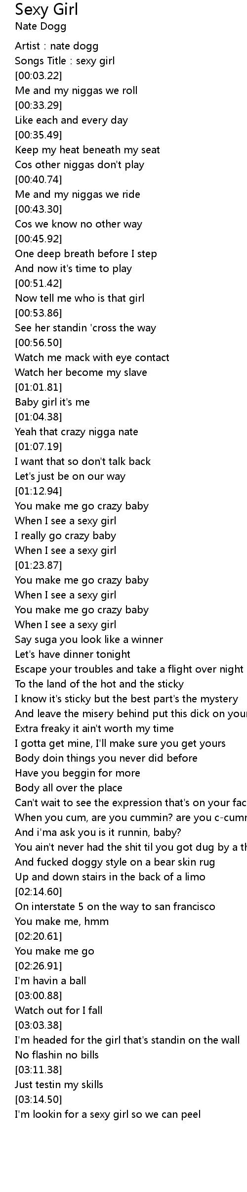 | [00:01.28] | Artist: nate dogg |