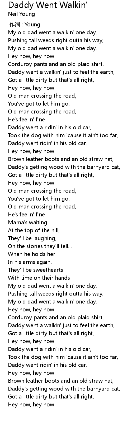 | [03:04.45] | My old dad went a walkin' one day, |