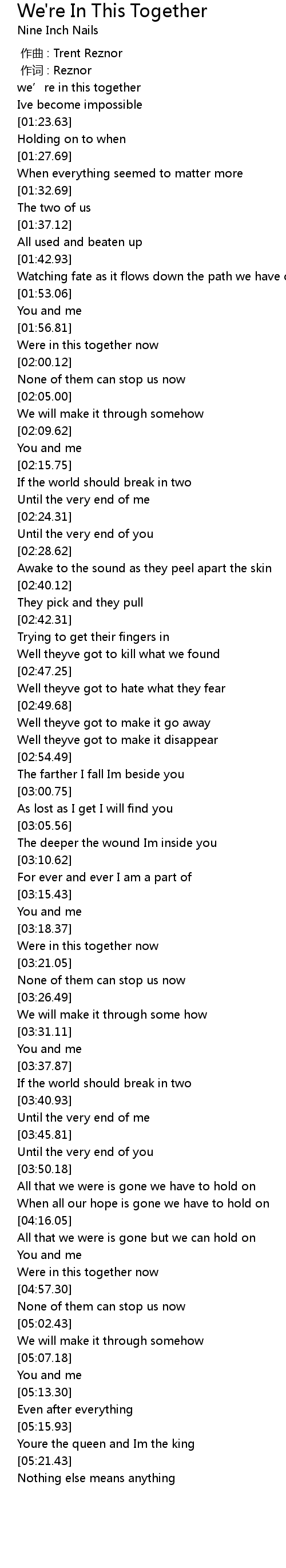 | [04:13.37] | When all our hope is gone we have to hold on |
