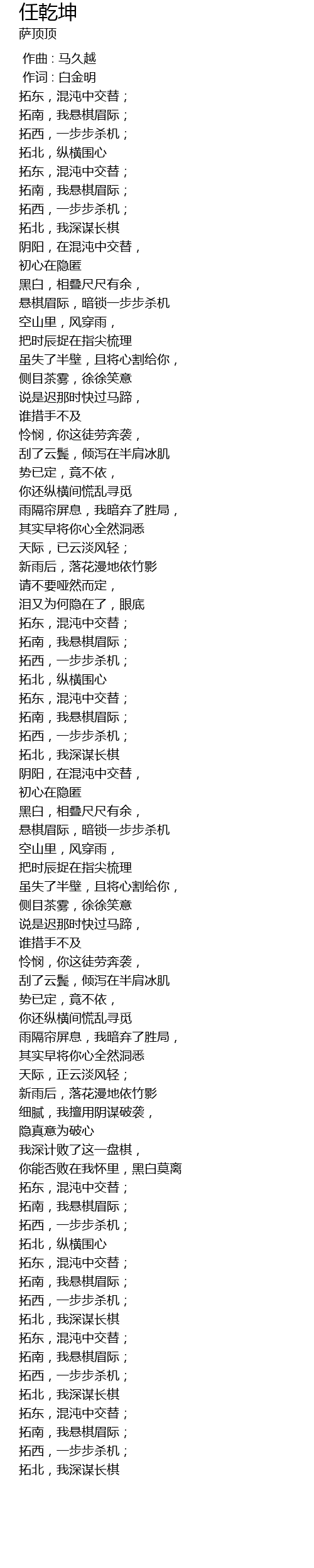 | [03:34.72] | 拓北,我深谋长棋 |