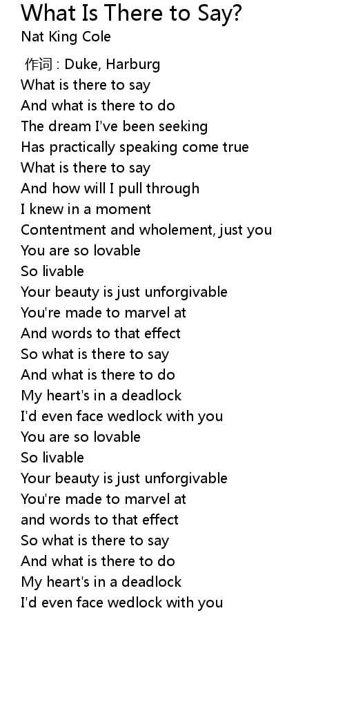 | Song | What Is There to Say? |