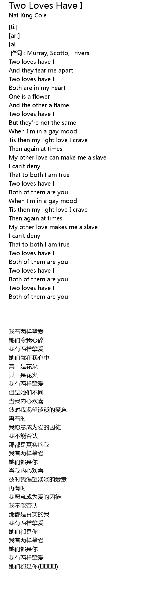 | [00:41.47] | Two loves have I |