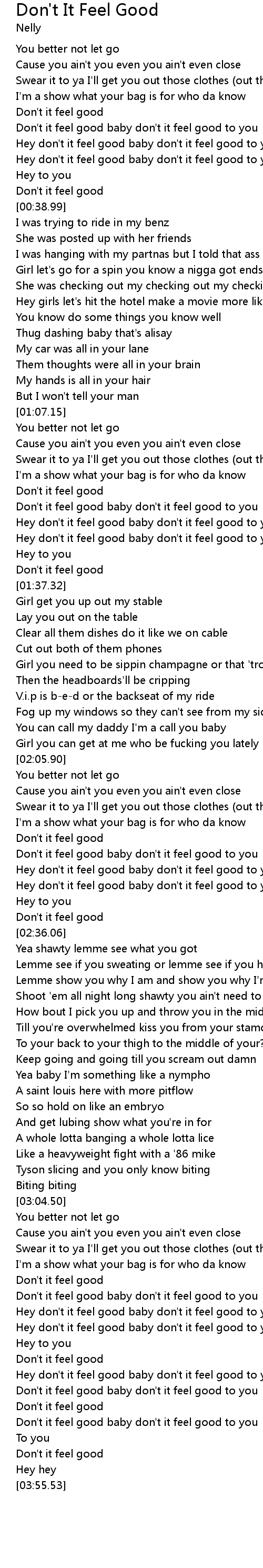 | [03:36.38] | Hey don't it feel good baby don't it feel good to you |