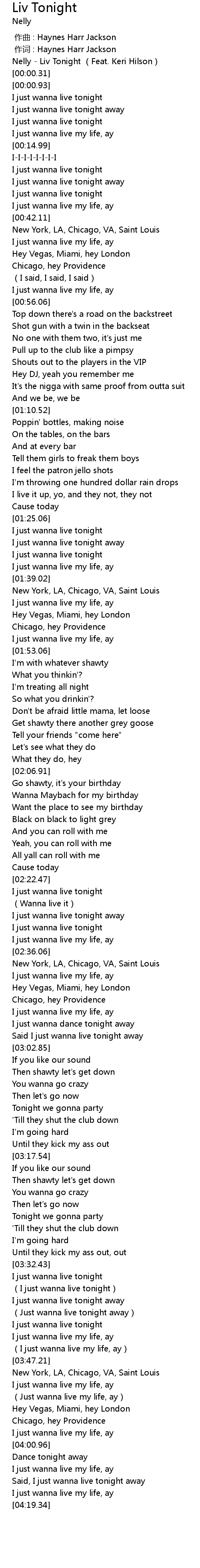 | [00:00.01] | Nelly - Liv Tonight (Feat. Keri Hilson) |