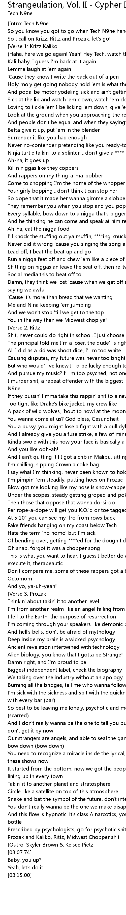 | Song | Strangeulation, Vol. II - Cypher IV (feat. Krizz Kaliko, Rittz & Prozak) |