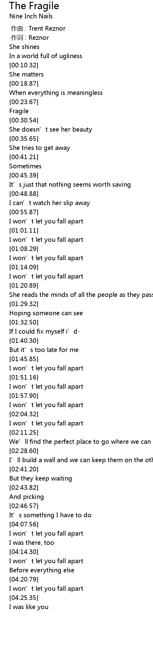 | [00:00.00] | zuo qu : Trent Reznor |