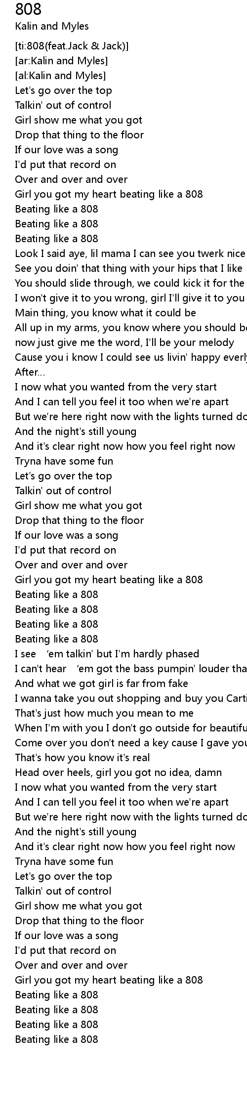 | [02:53.16] | Girl you got my heart beating like a 808 |