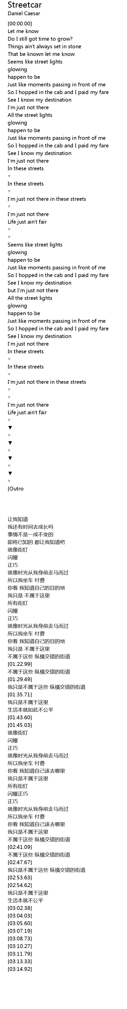 | [01:46.03] | Seems like street lights |