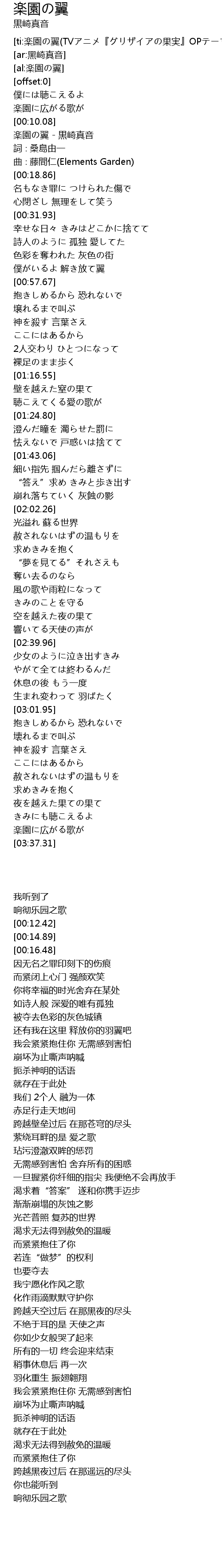 | [00:12.42] | 楽園の翼 - 黒崎真音 |
