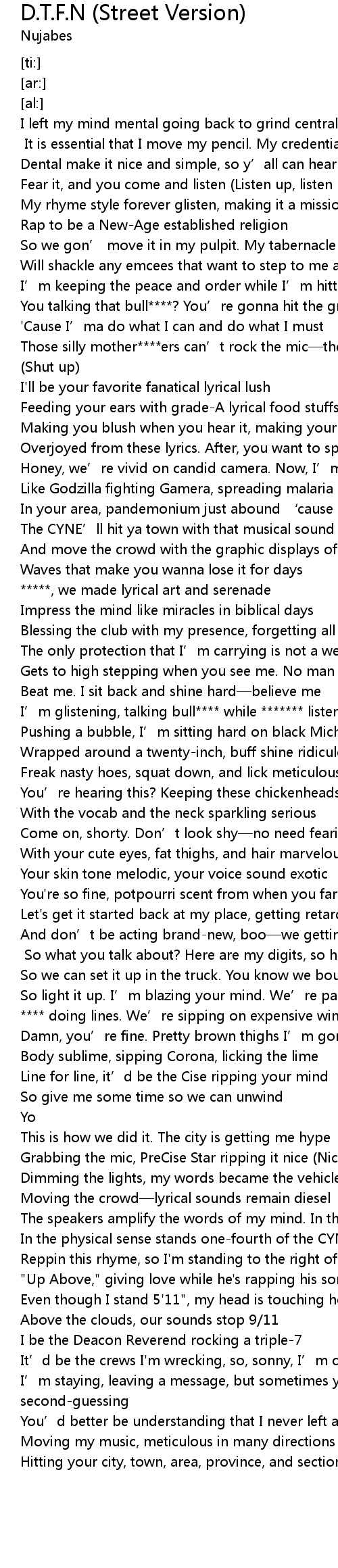 | [01:59.89] | Freak nasty hoes, squat down, and lick meticulous |