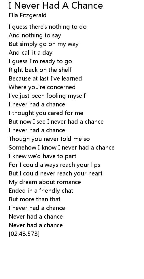 Somehow I know I never had a chance |
