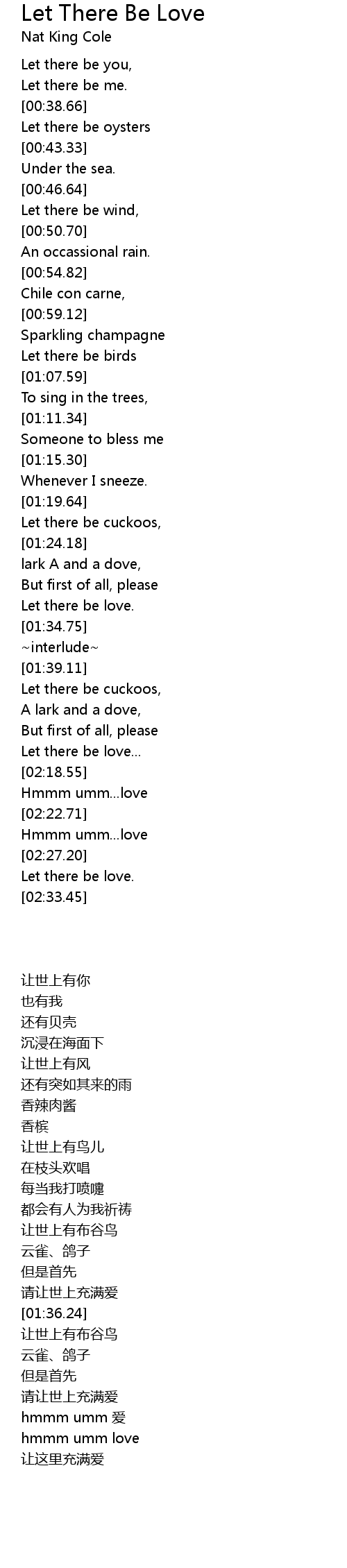 | [02:16.06] | Let there be love... |