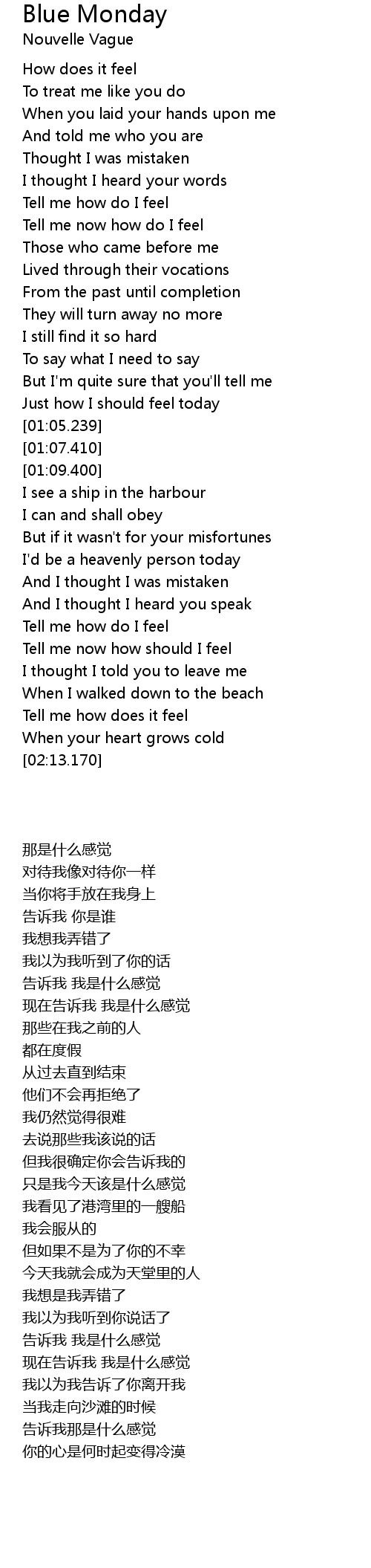 | [01:39.460] | Tell me now how should I feel |