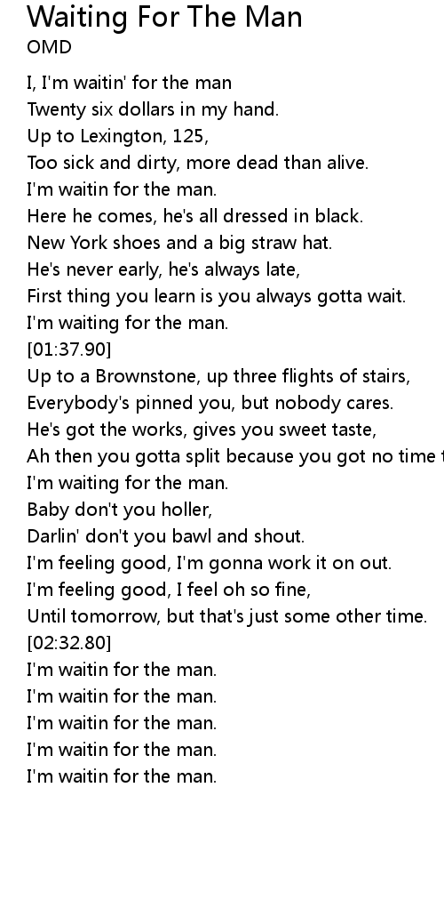 | [00:41.37] | I'm waitin for the man. |