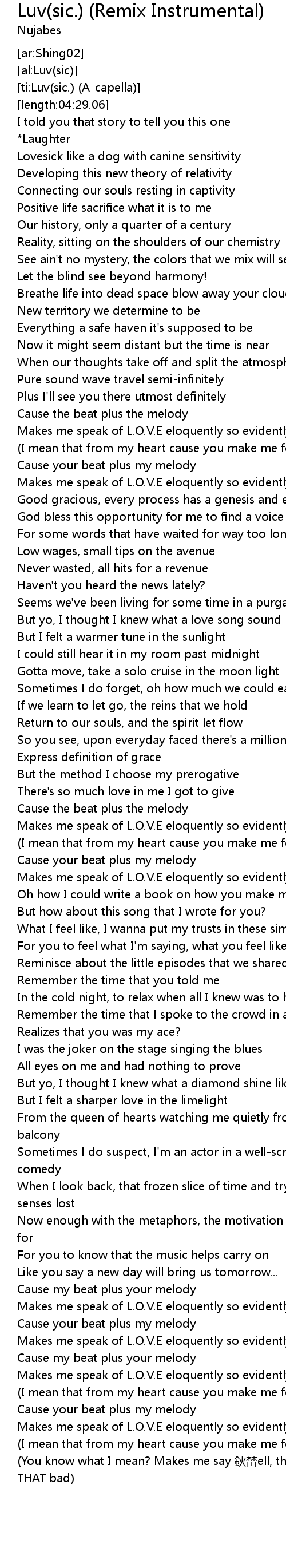 | [ti:Luv(sic.) (A-capella)] | |